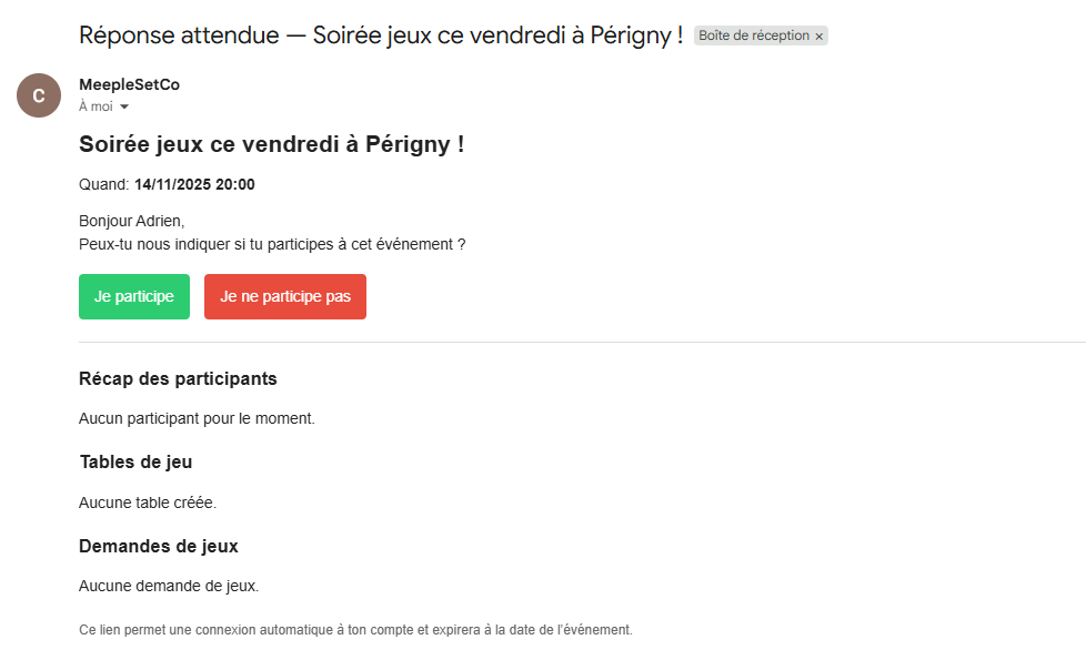 Un système de relance par e-mail permet désormais de prévenir les joueurs et de confirmer leur participation.